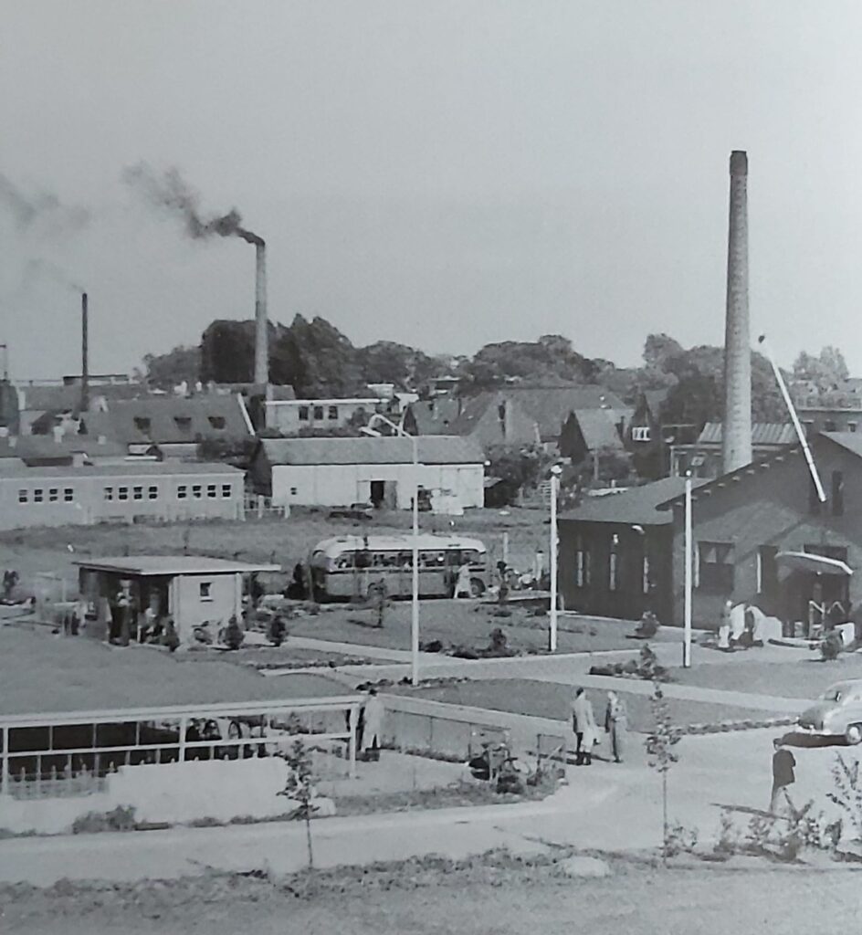 Zicht op de vier fabriekshallen van Philips (1954)