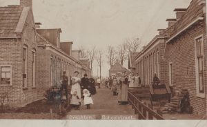 De Schoolstraat in Drachten is een van de oudste en meest karakteristieke straten, met een geschiedenis die teruggaat tot het begin van de 20e eeuw. De straat ligt in het centrum van Drachten en wordt gekenmerkt door charmante twee-onder-een-kapwoningen uit circa 1910. Deze woningen hebben vaak authentieke details behouden, zoals fraaie daklijsten, balkenplafonds, paneeldeuren en brede houten vloerdelen, wat bijdraagt aan de historische uitstraling van de straat.